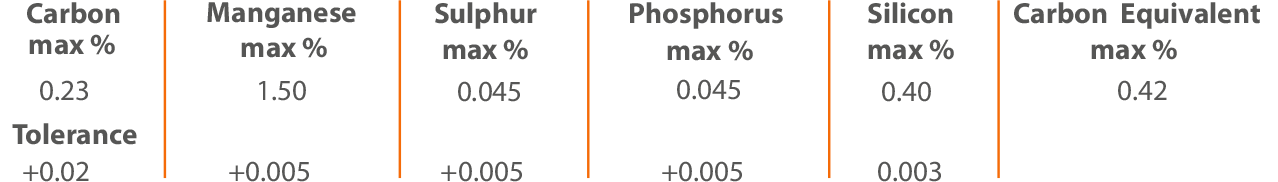 The chemical composition and mechanical properties of the Grade maintained by us are as follows: