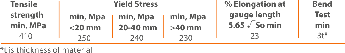 Our structural steel is manufactured as per IS 2062 Standard (Rev-2006), the set grade for “Steel for General Structural Purposes”. Our products adhere to all the quality parameters of this standard to Grade A, commonly known as Fe 410 WA.